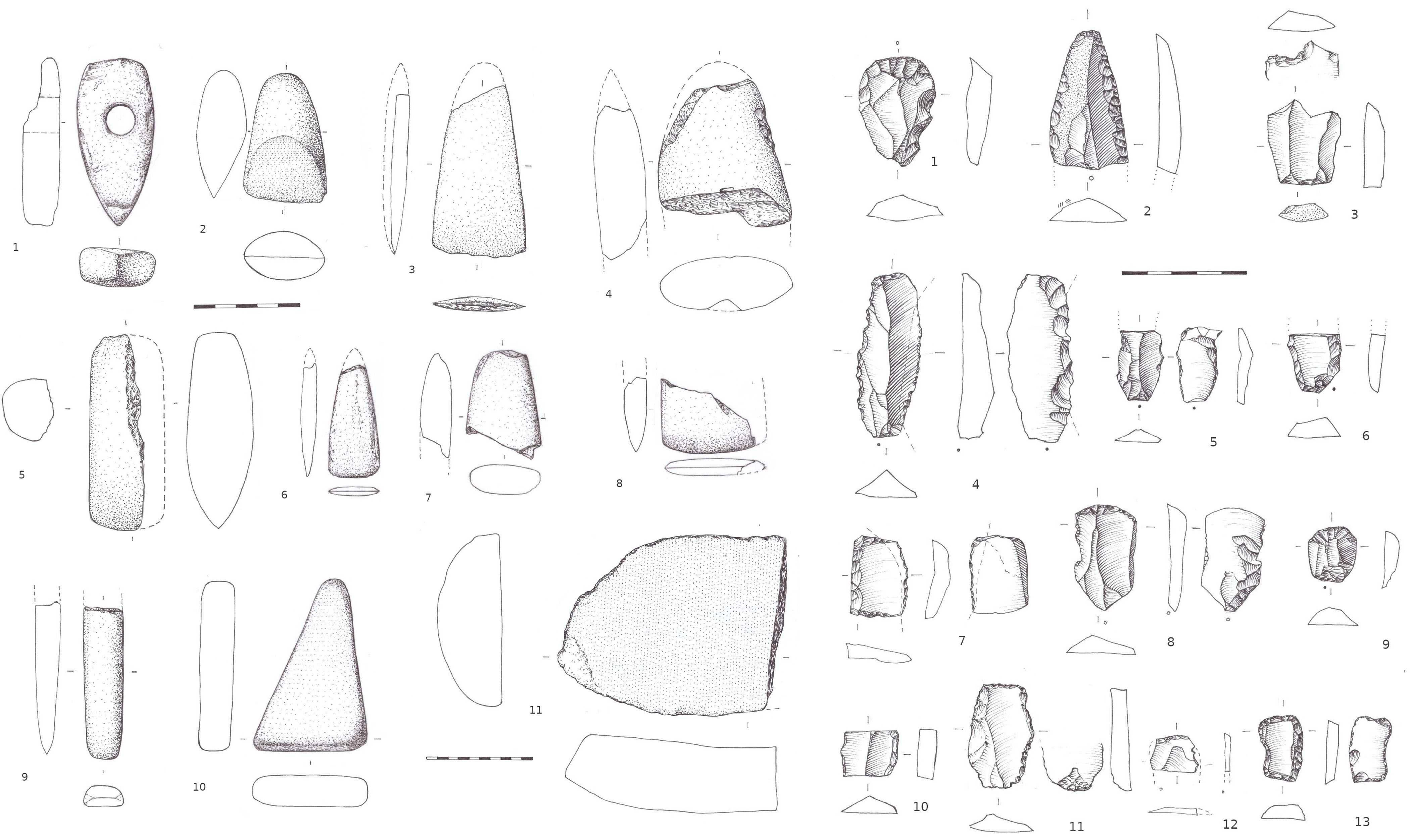 Nálezy na archeologické lokalitě Hradisko u Kroměříže. Pevnosti z doby bronzové. Keramika Nejobvyklejším nálezem na archeologických lokalitách je téměř vždy keramika. Nachází se skoro ve všech objektech a je velice důležitá pro časové zařazení jednotlivých kontextů. Keramické nálezy jsou zpravidla ve zlomcích a najdeme jen střepy, výjimkou jsou předměty z hrobů, které jsou sice většinou poškozené, nicméně lze je kompletně rekonstruovat. Jiné výrobky z hlíny Z pálené hlíny se nevyráběly pouze nádoby, ale i jiné předměty. Často funkční, jako jsou lžičky, přesleny či závaží, ale i symbolické, jako jsou antropomorfní či zoomorfní plastiky. Kamenná industrie Součástí nálezových souborů jsou i předměty z kamene či kosti, které umožňují studovat dovednosti svých tvůrců i rozsah oblasti pro získávání surovin.